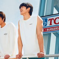 [2PACK] 남녀공용 레터링 슬리브리스 래쉬가드
