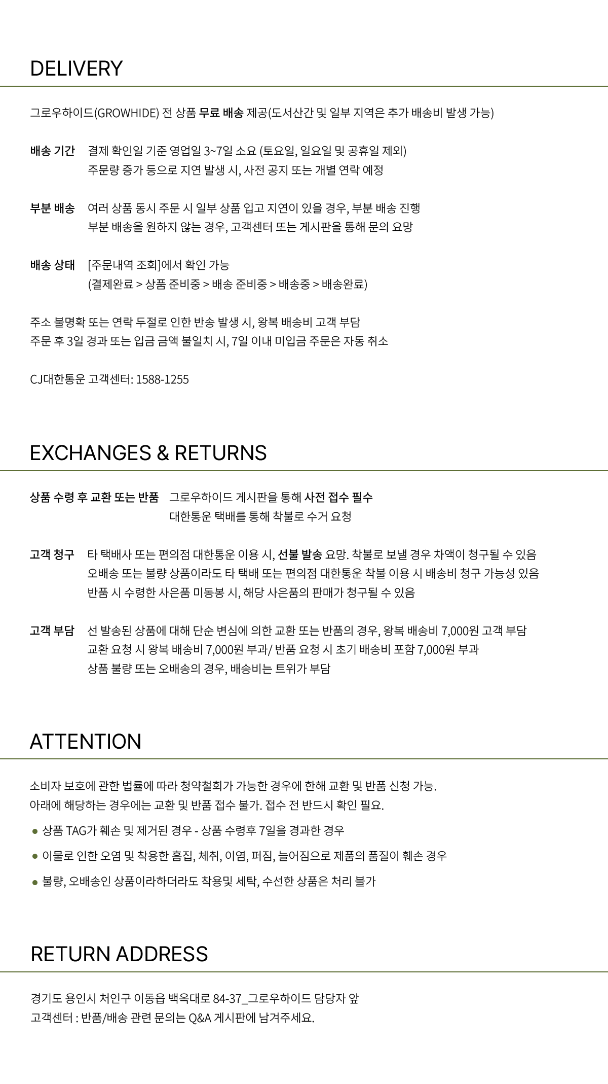 그로우하이드(GROWHIDE)는 깊이 있는 스타일과 감성을 담아 무채색 절제의 레이어링으로 트렌디하고 독창적인 컨템포러리 웨어를 제안하는 브랜드입니다.