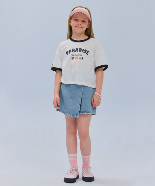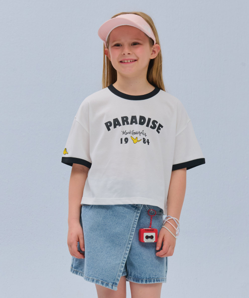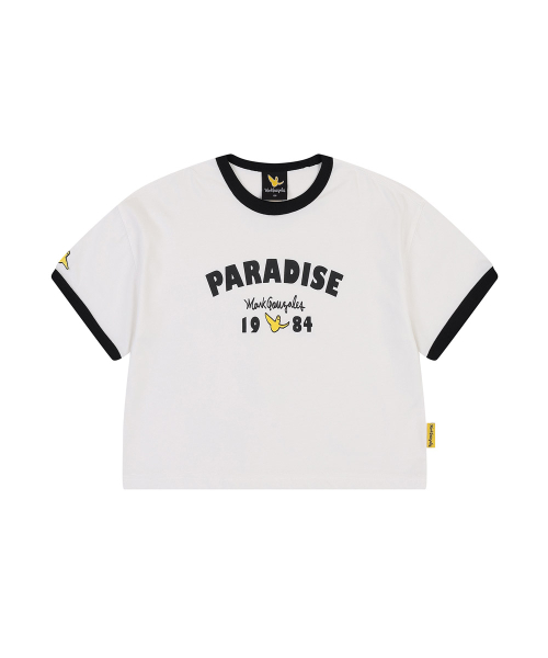 엔젤 크롭 링거 반팔 티셔츠-화이트
