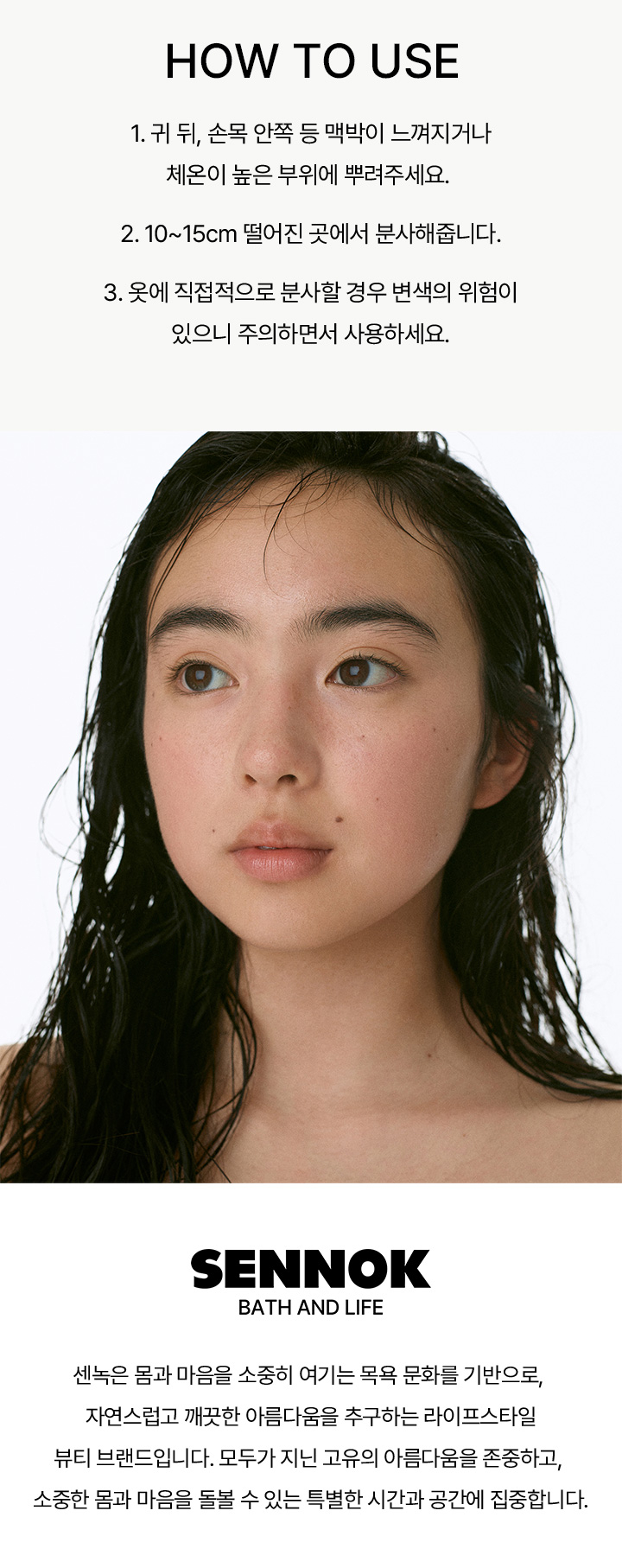 센녹(SENNOK)은 몸과 마음을 소중히 여기는 목욕 문화를 기반으로, 자연스럽고 깨끗한 아름다움을 추구하는 라이프스타일 뷰티 브랜드입니다.