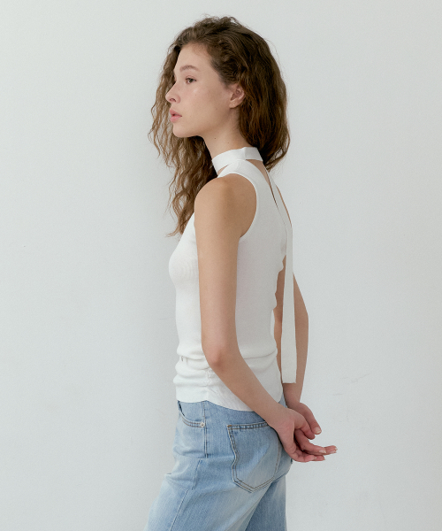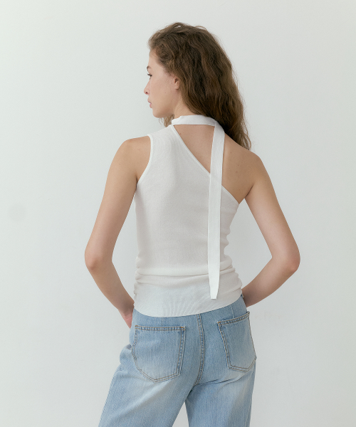 One-shoulder Scarf Sleeveless Knit (ivory)