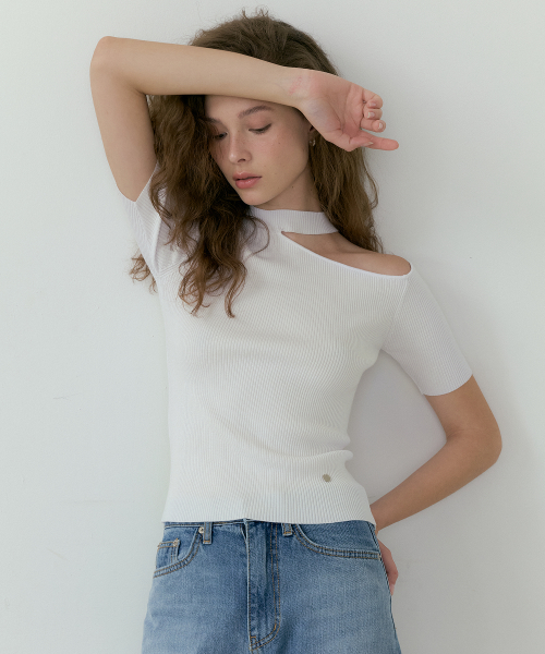 Cut off half-turtleneck Knit (ivory)