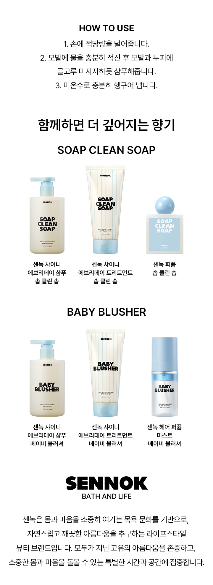 센녹(SENNOK)은 몸과 마음을 소중히 여기는 목욕 문화를 기반으로, 자연스럽고 깨끗한 아름다움을 추구하는 라이프스타일 뷰티 브랜드입니다.