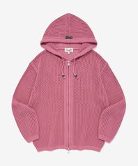 P-ACTIVE 비즈 메쉬 후드 니트 집업_빈티지 핑크
