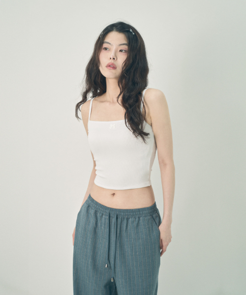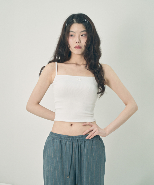 리본 슬리브리스 탑 화이트