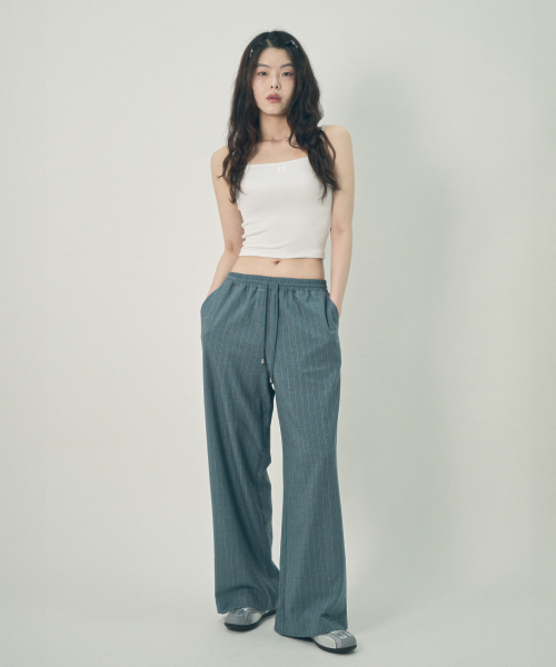 리본 슬리브리스 탑 그레이