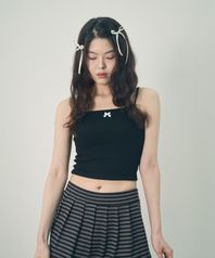 리본 슬리브리스 탑 블랙