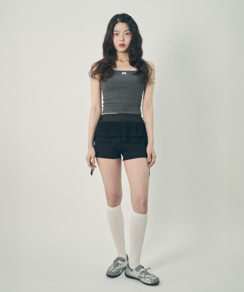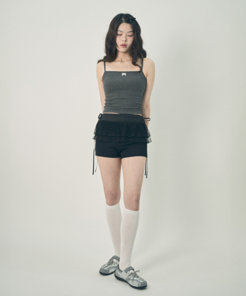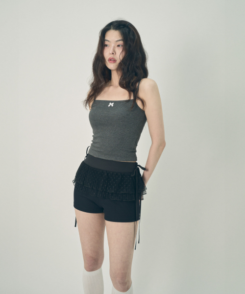 리본 슬리브리스 탑 블랙