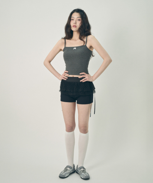 리본 슬리브리스 탑 그레이