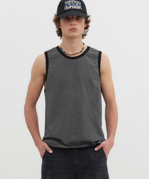 스트라이프 슬리브리스_BLACK
