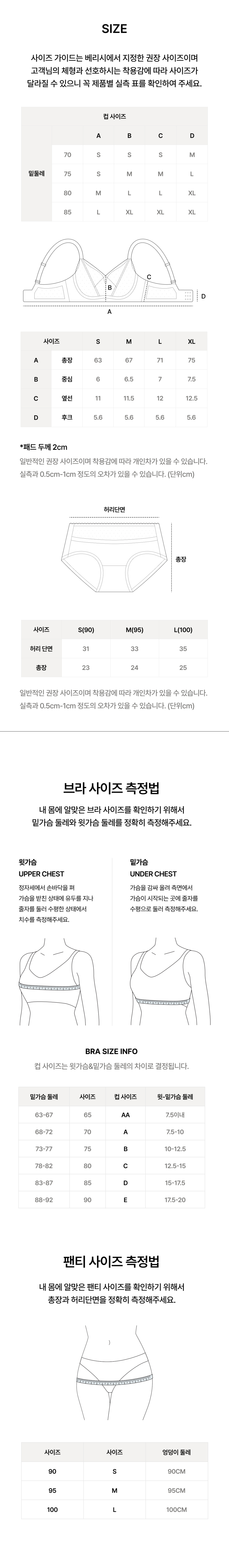 베리시(VERISH)는 'You are what you feel(좋은 느낌이, 좋은 나를 만든다)'라는 슬로건으로, 피부와 가장 가까운 언더웨어를 제안하는 브랜드입니다. 심리스 & 와이어리스 기술력과 부드러운 감촉으로, 보이는 것만큼 느끼는 것이 중요한 필링 웨어를 선보입니다.