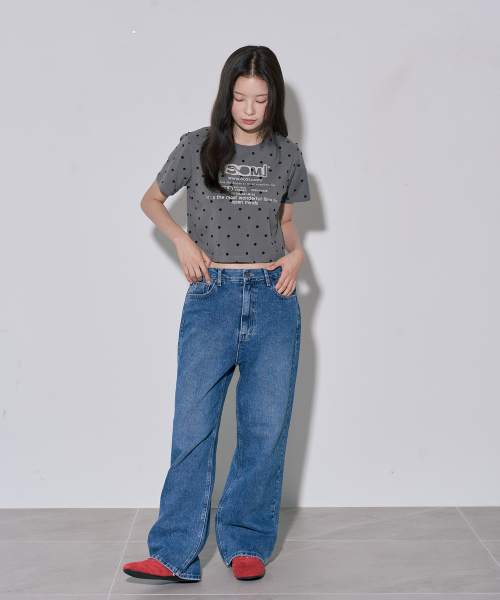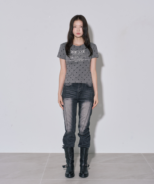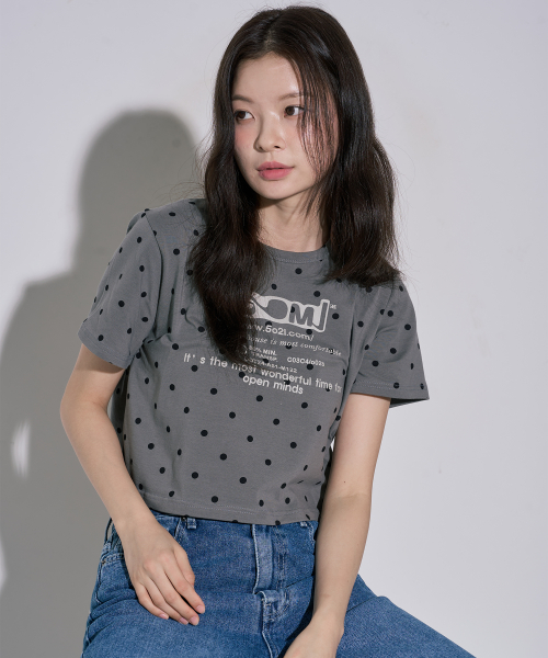 레터링 도트 크롭 반팔티 그레이