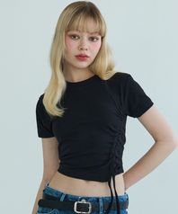 셔링 리본 크롭 탑 (블랙)