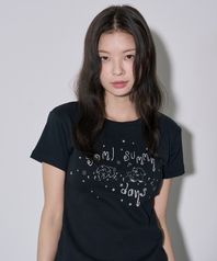 써니 데이즈 실버 프린트 반소매 블랙