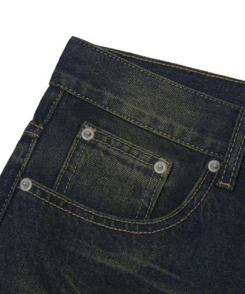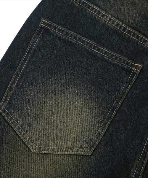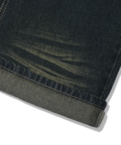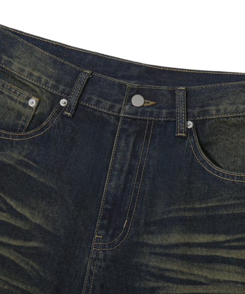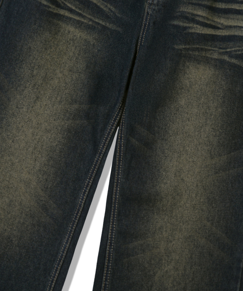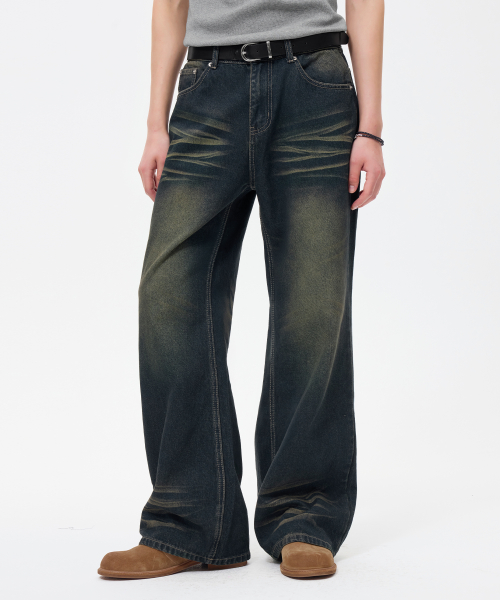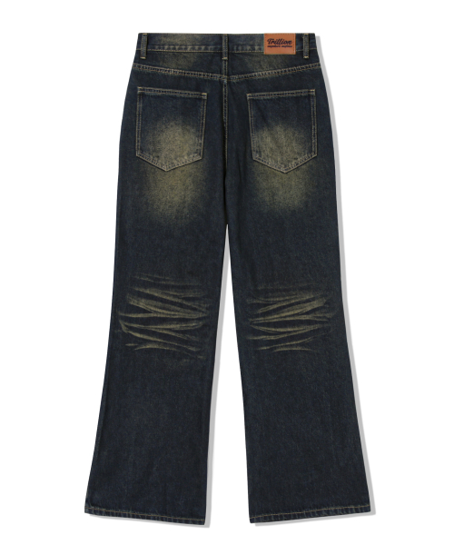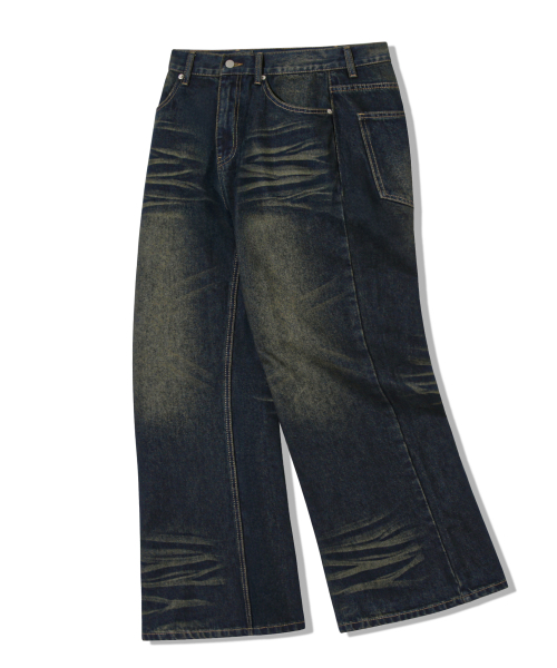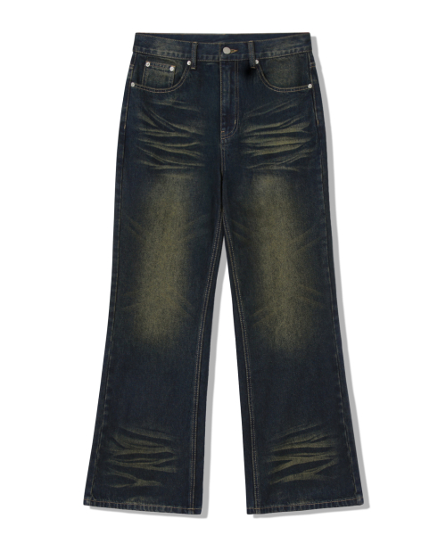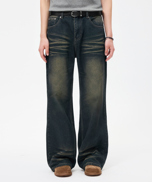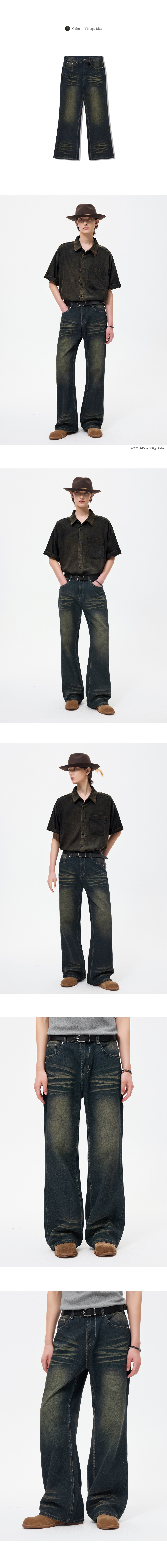 캣 브러시 워싱 플레어 와이드 데님 팬츠_빈티지 블루