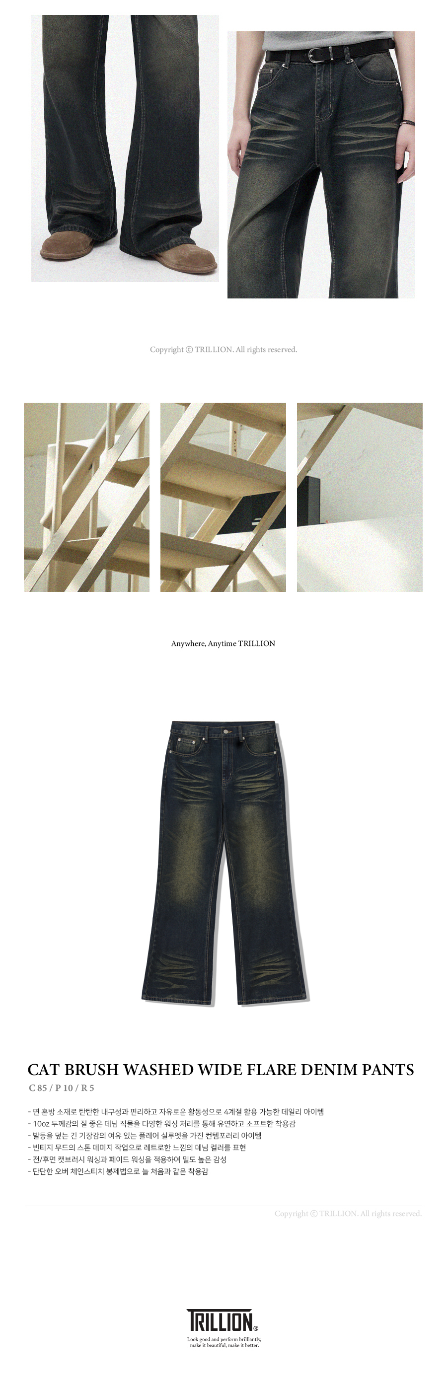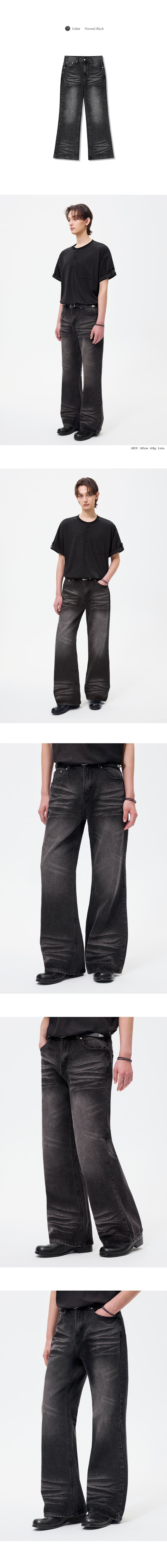 캣 브러시 워싱 플레어 와이드 데님 팬츠_노말 블랙