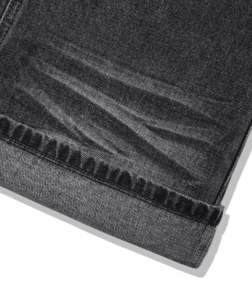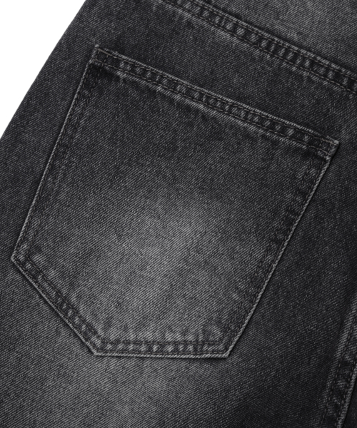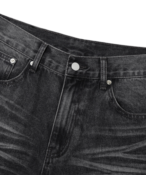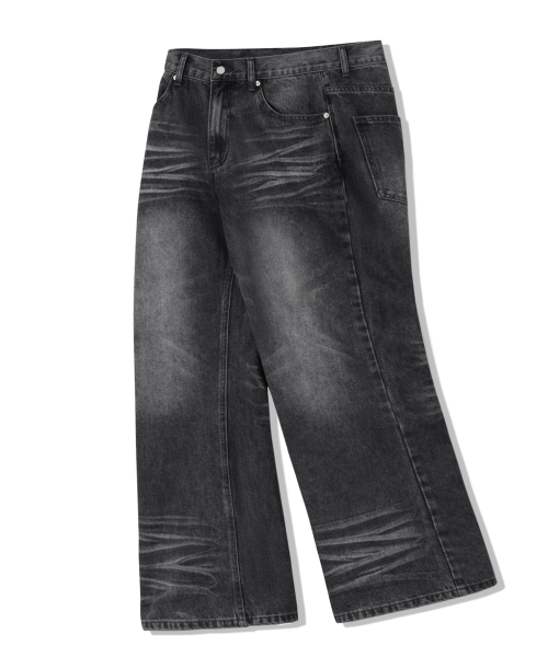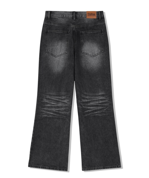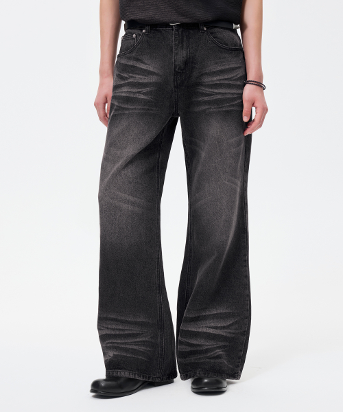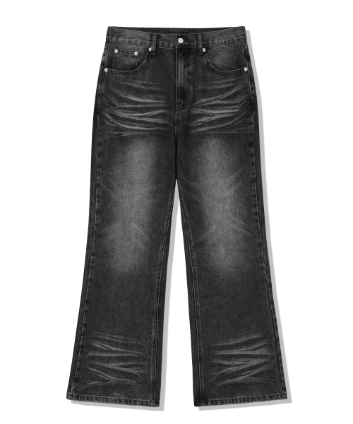 캣 브러시 워싱 플레어 와이드 데님 팬츠_노말 블랙