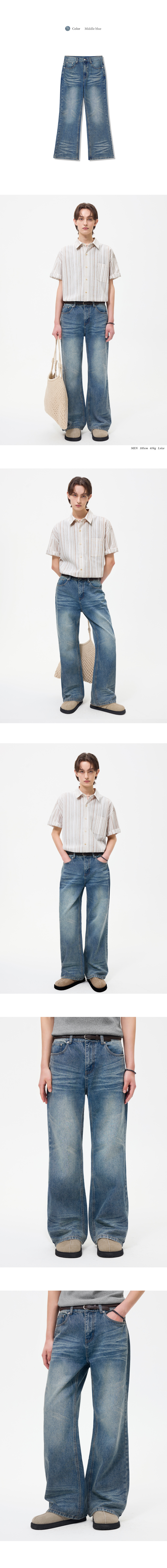 캣 브러시 워싱 플레어 와이드 데님 팬츠_미들 블루