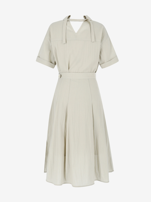 셔츠형 밑단 플레어 롱 드레스 베이지