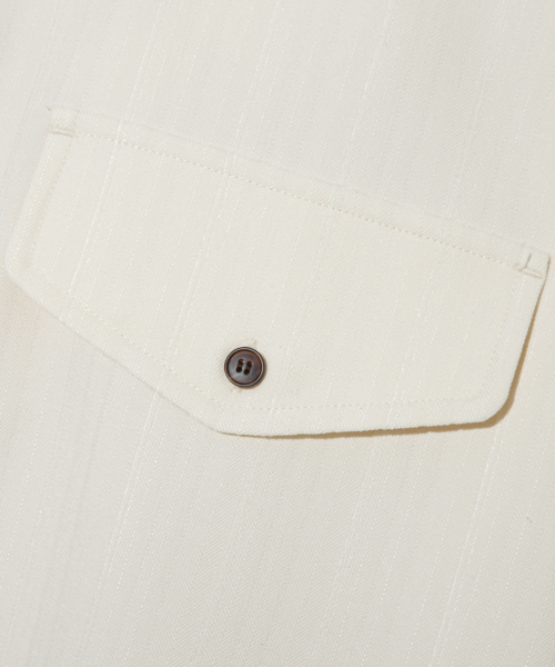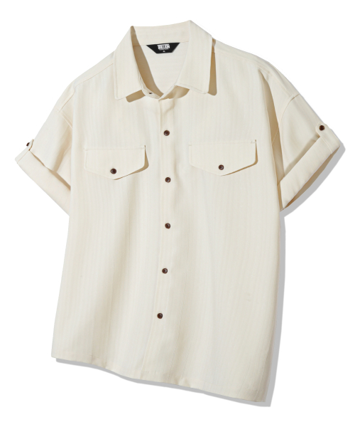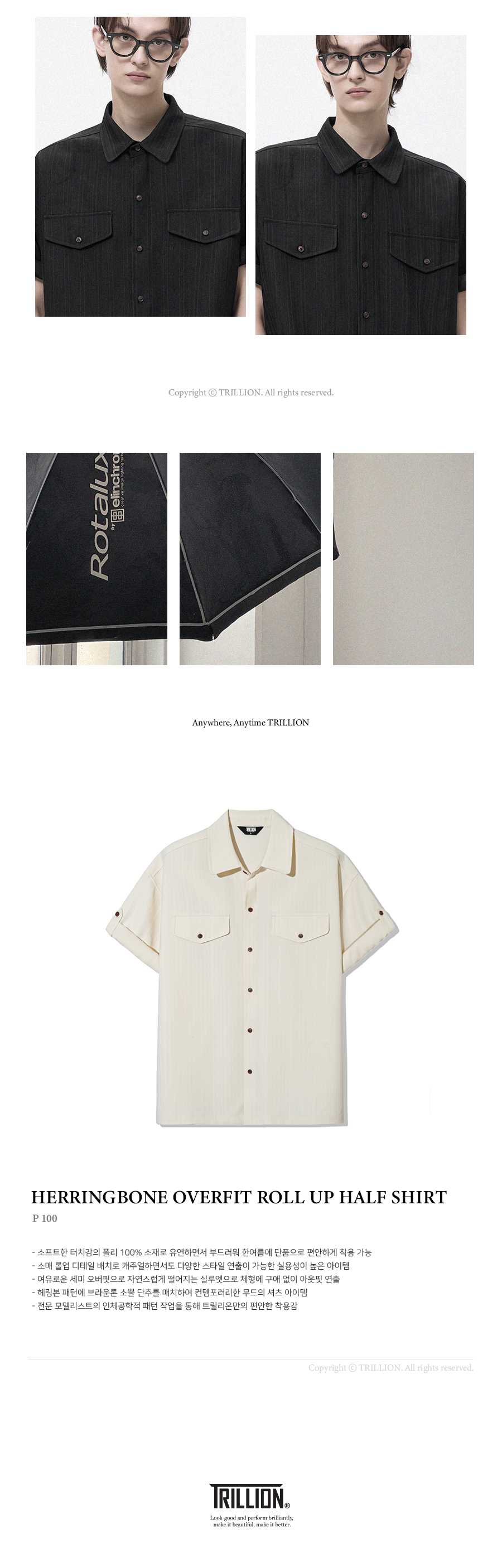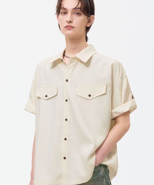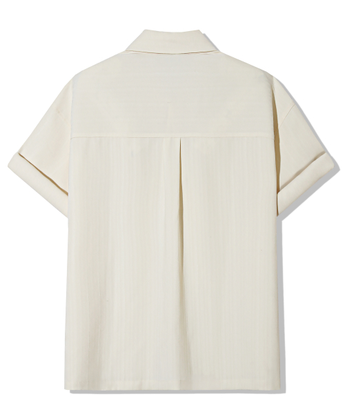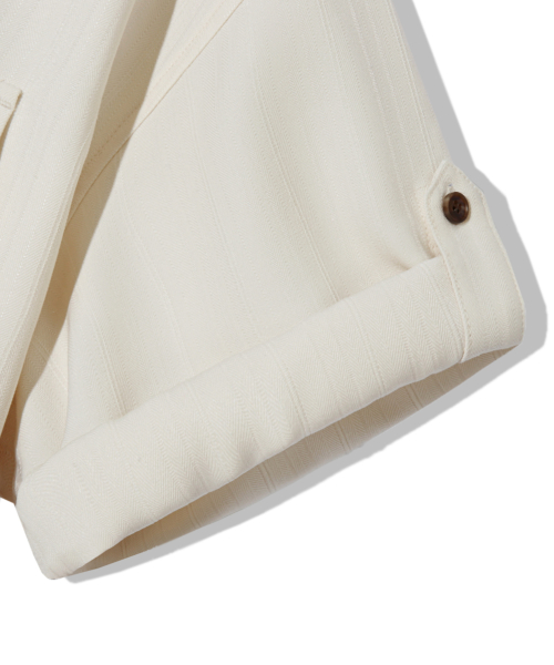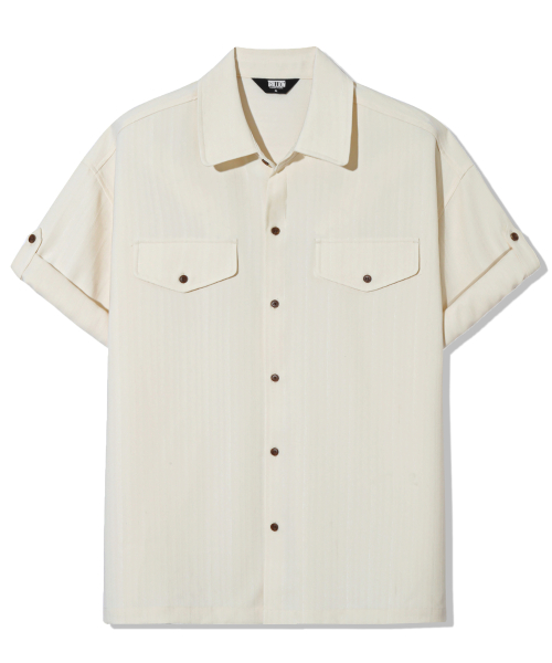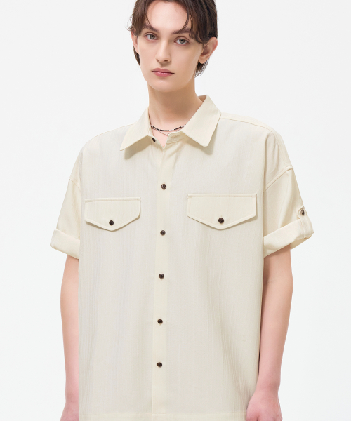 헤링본 오버핏 롤업 하프 셔츠_아이보리