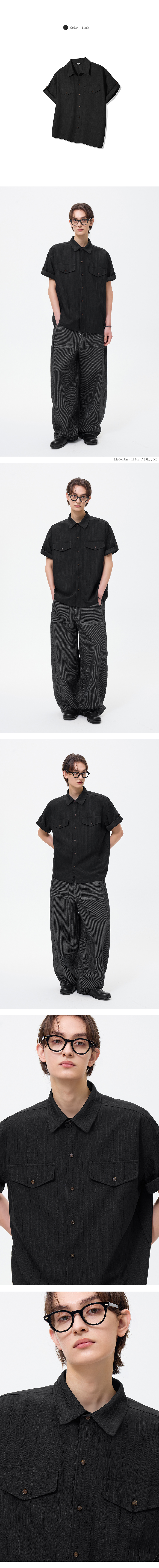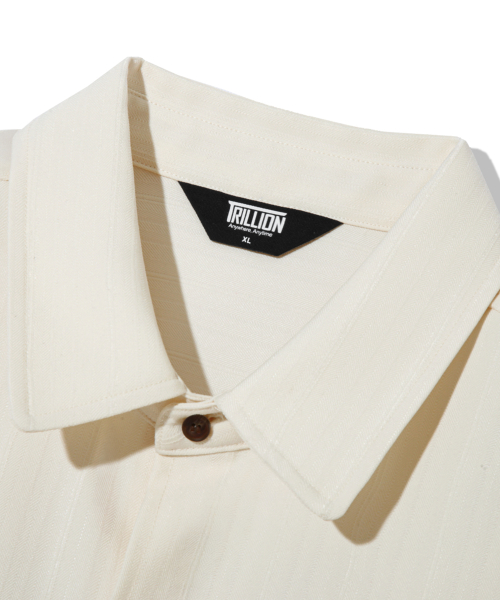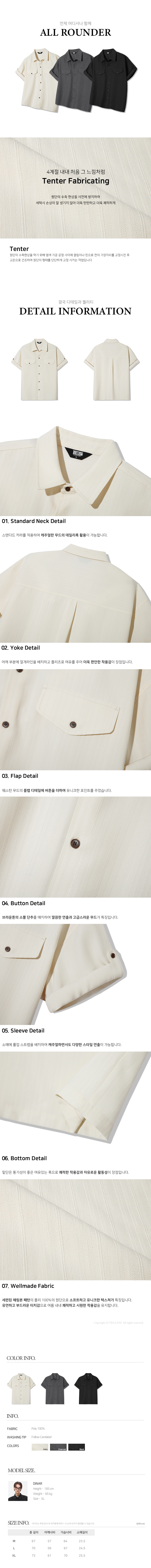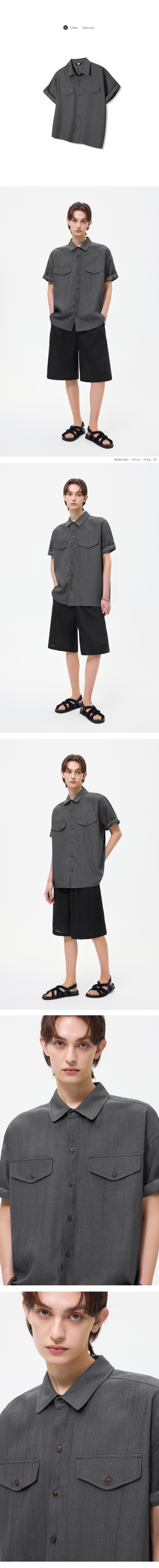 헤링본 오버핏 롤업 하프 셔츠_아이보리