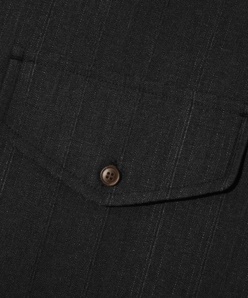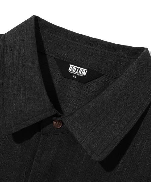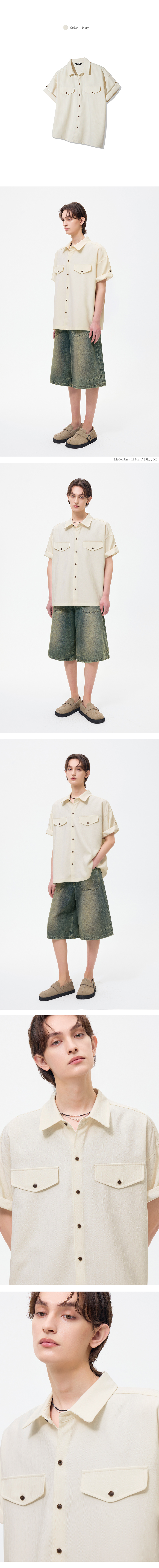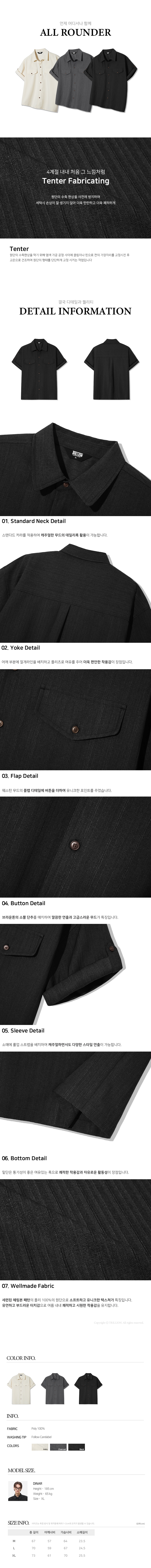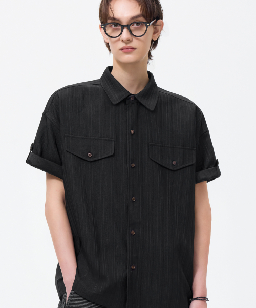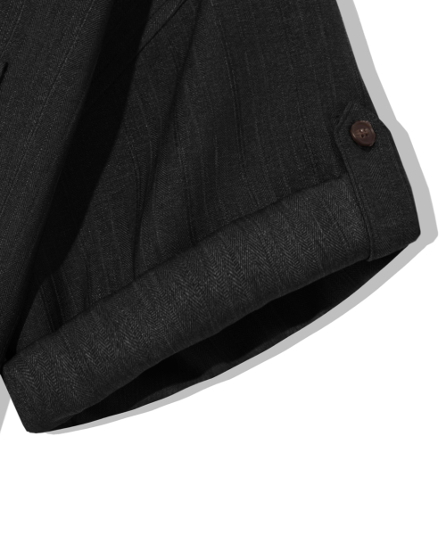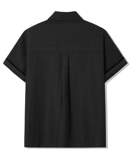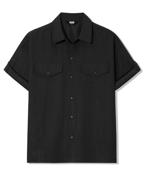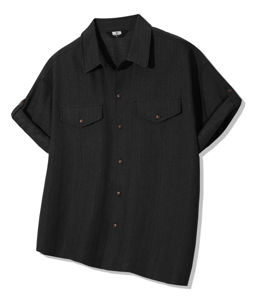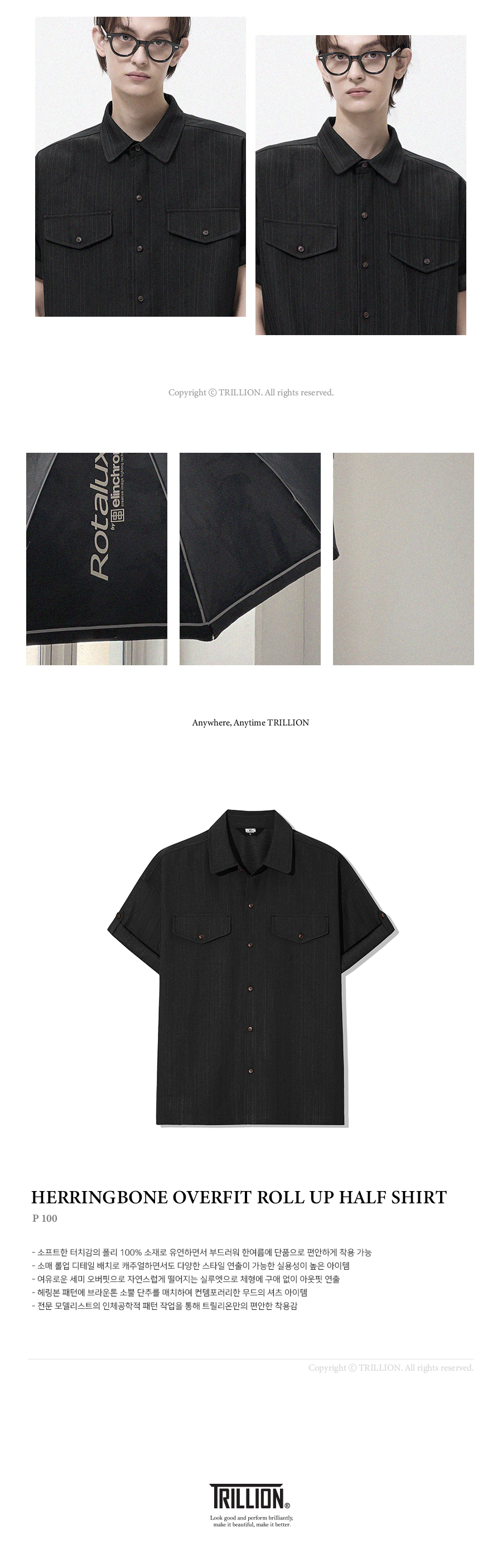 헤링본 오버핏 롤업 하프 셔츠_블랙