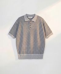 Pure Cotton Collar Knit STRIPE GREY