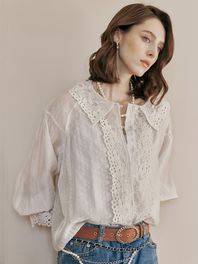 라운드 카라 아일렛 레이스 블라우스