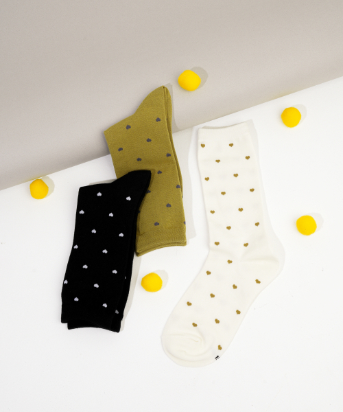 [3PACK] 1507 유니섹스 하트 도트 베이직 삭스 - 컬러팩