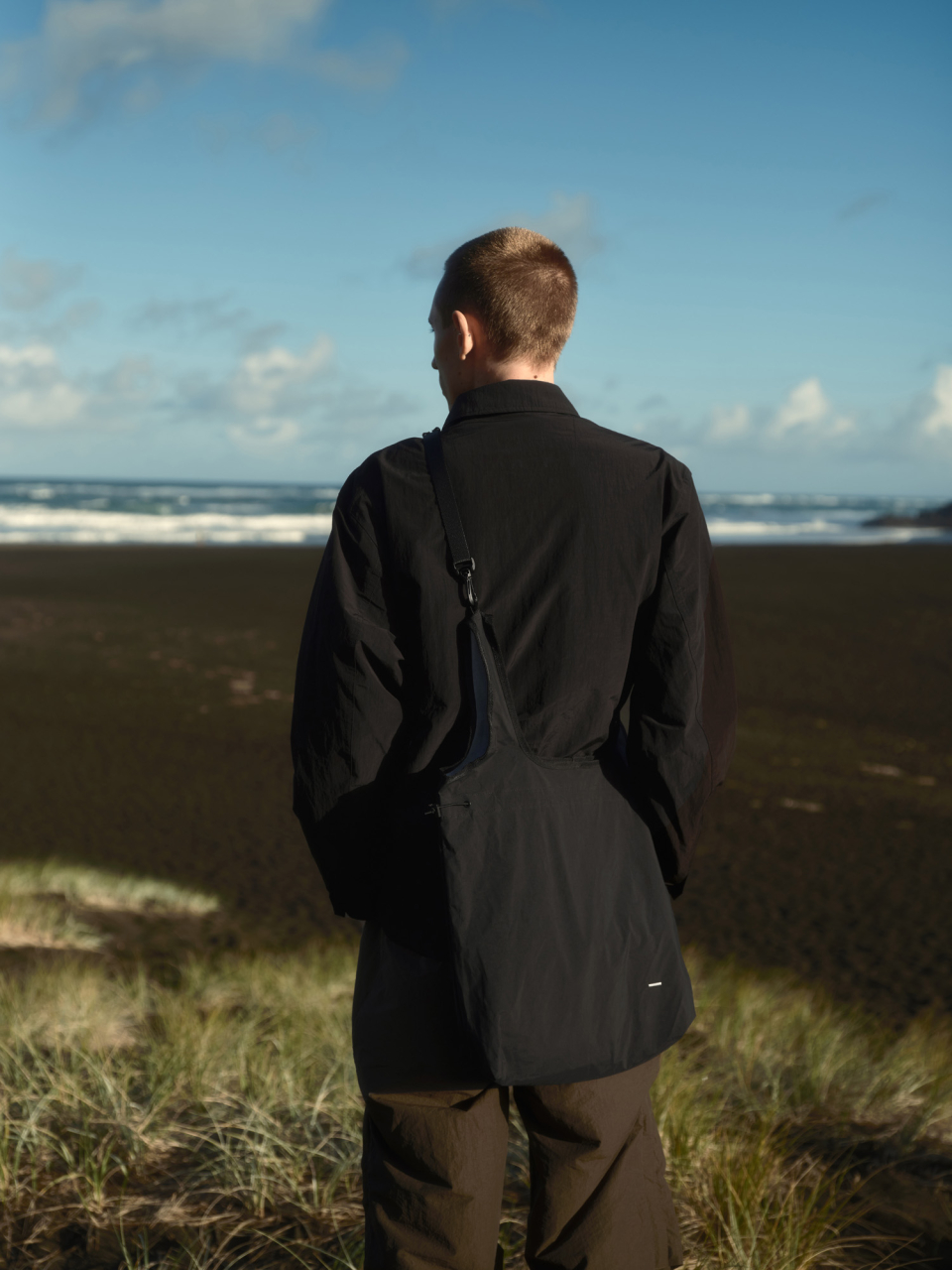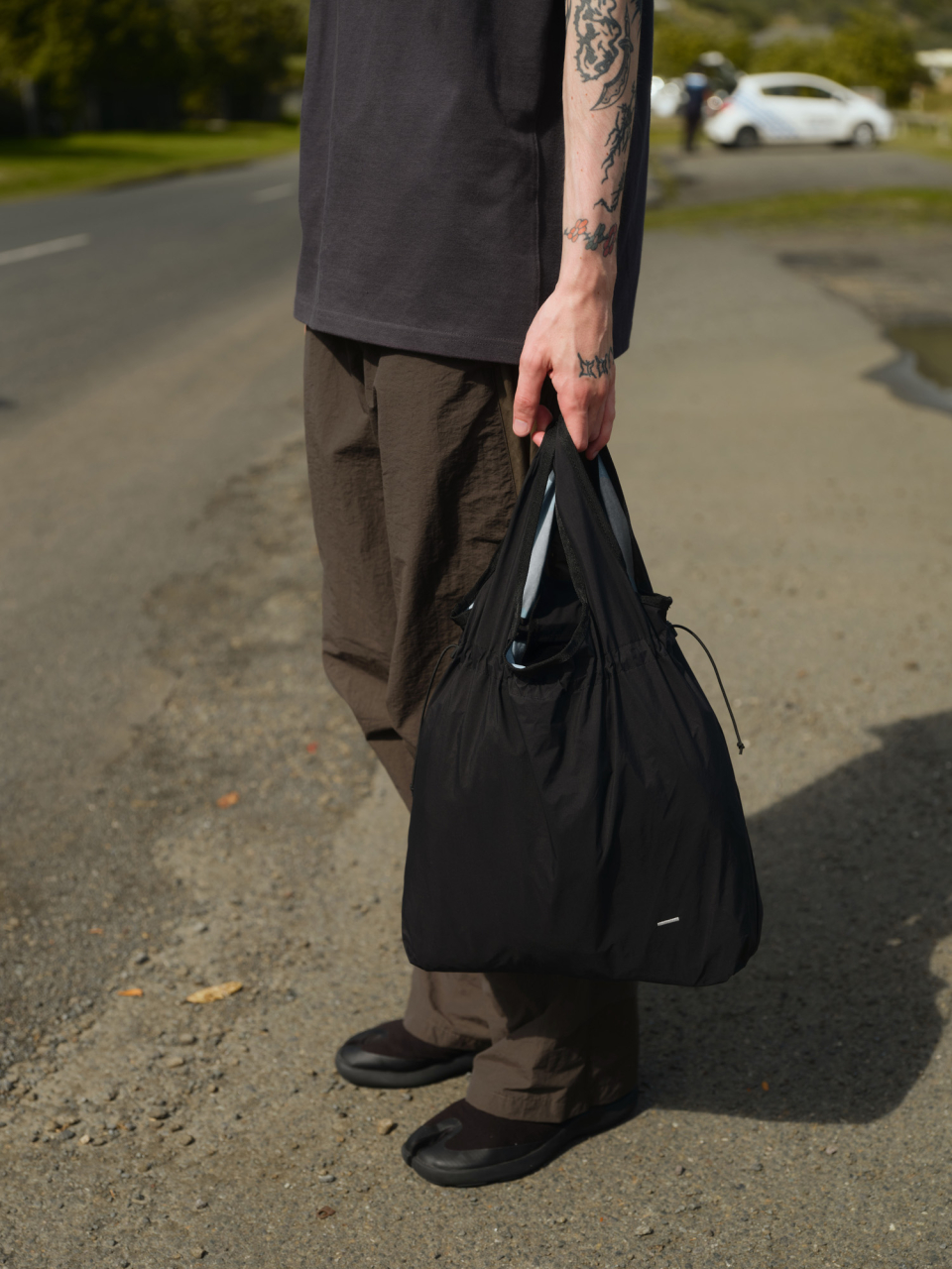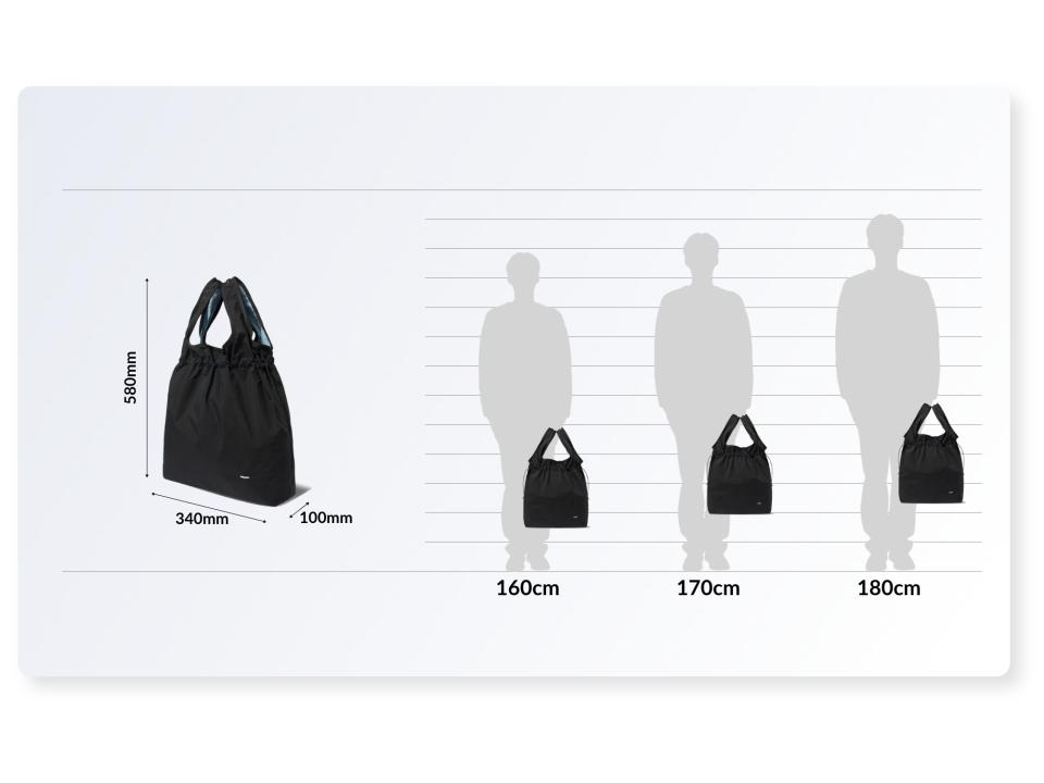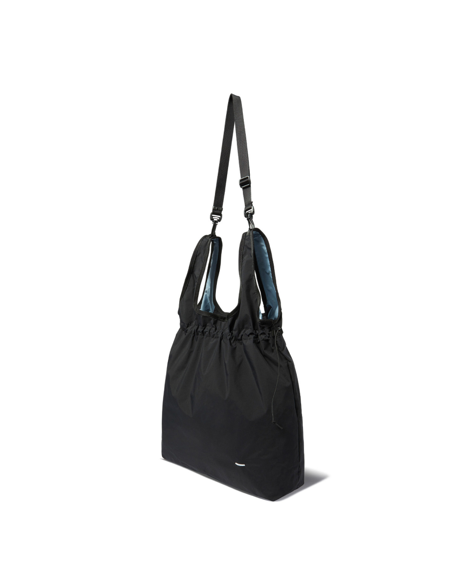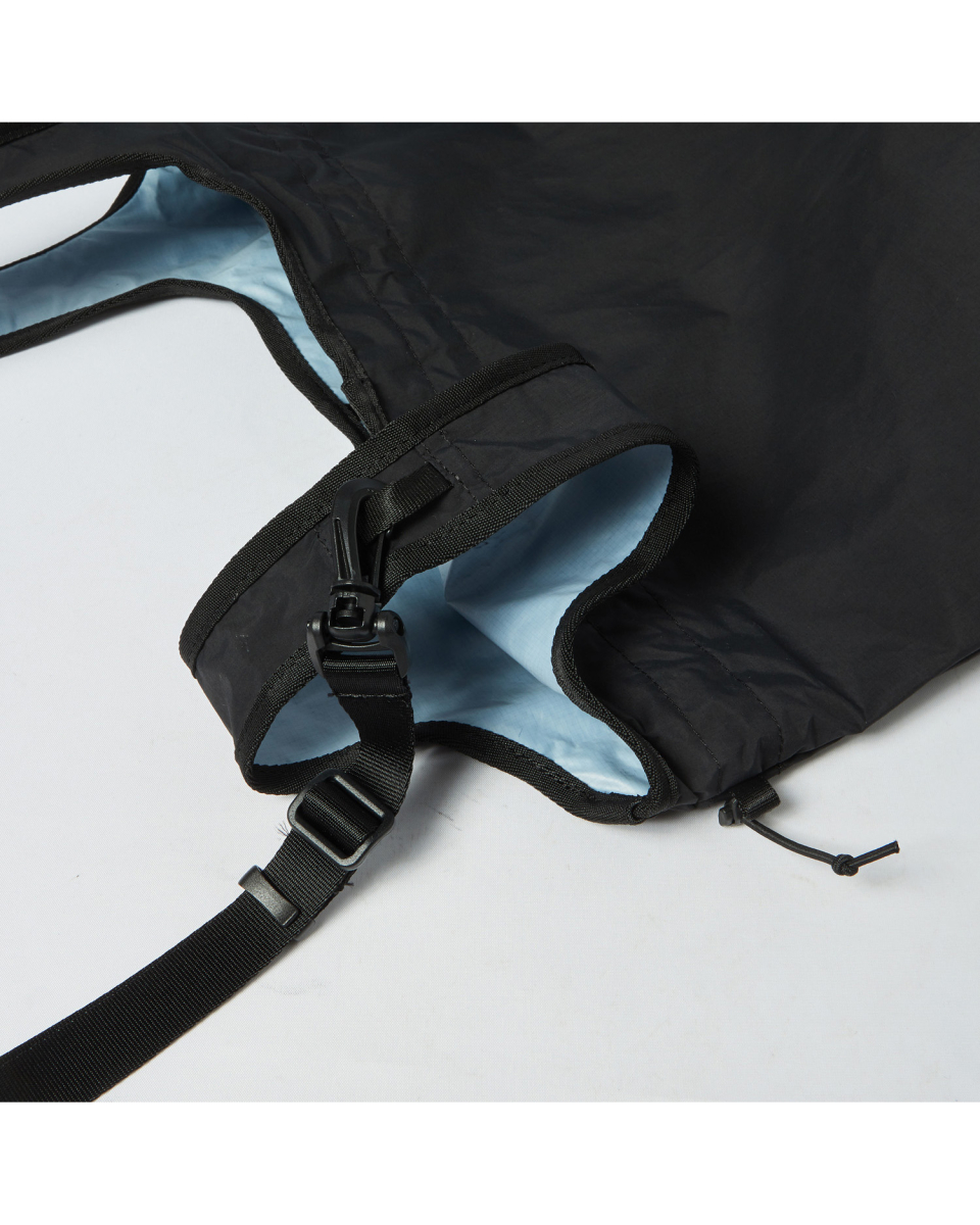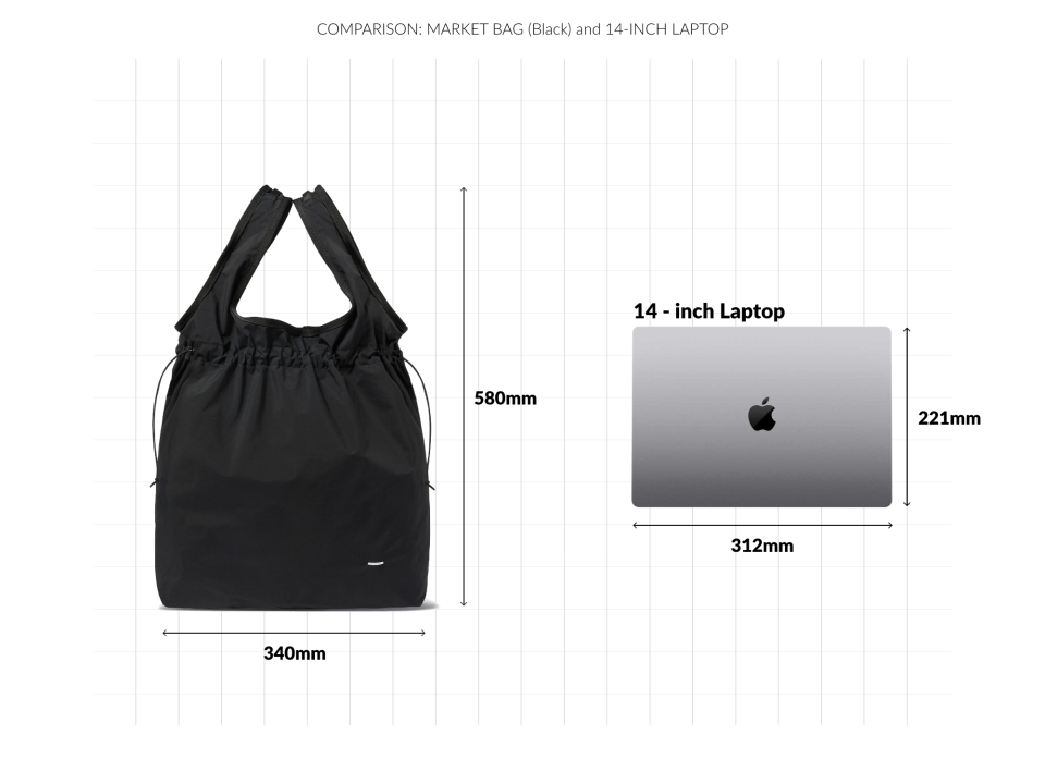 MARKET BAG은 단순하지만 기능성과 유연함이 돋보이는 구조를 갖췄습니다. 상단부는 E-스트링과 스토퍼를 활용해 입구 여밈과 실루엣 조절이 가능하며, 가방 안의 내용물에 따라 자연스럽게 형태가 변형됩니다. 이중 구조로 설계된 핸들은 손에 편안하게 감기며, 분리 가능한 나일론 능직 웨빙 스트랩과 회전식 후크를 통해 크로스백으로도 착용할 수 있습니다. 내부에는 작은 소지품을 안전하게 보관할 수 있는 이너 포켓을 구성했고, 일본산 Sungrip® 스냅버튼을 적용해 마감의 완성도를 높였습니다.