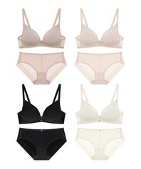 [최지수 PICK] [4PACK][스킨팔레트] 아쿠아 V넥 노와이어 브라팬티 세트