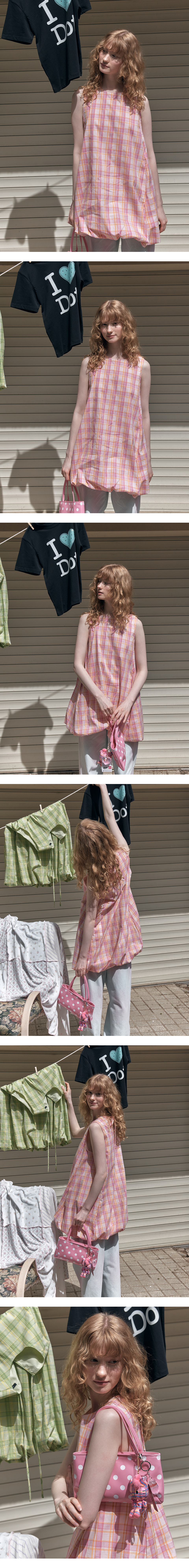 Puff check dress_pink