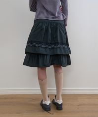 337. 티어드 레이스 스커트 _ 다크 그린