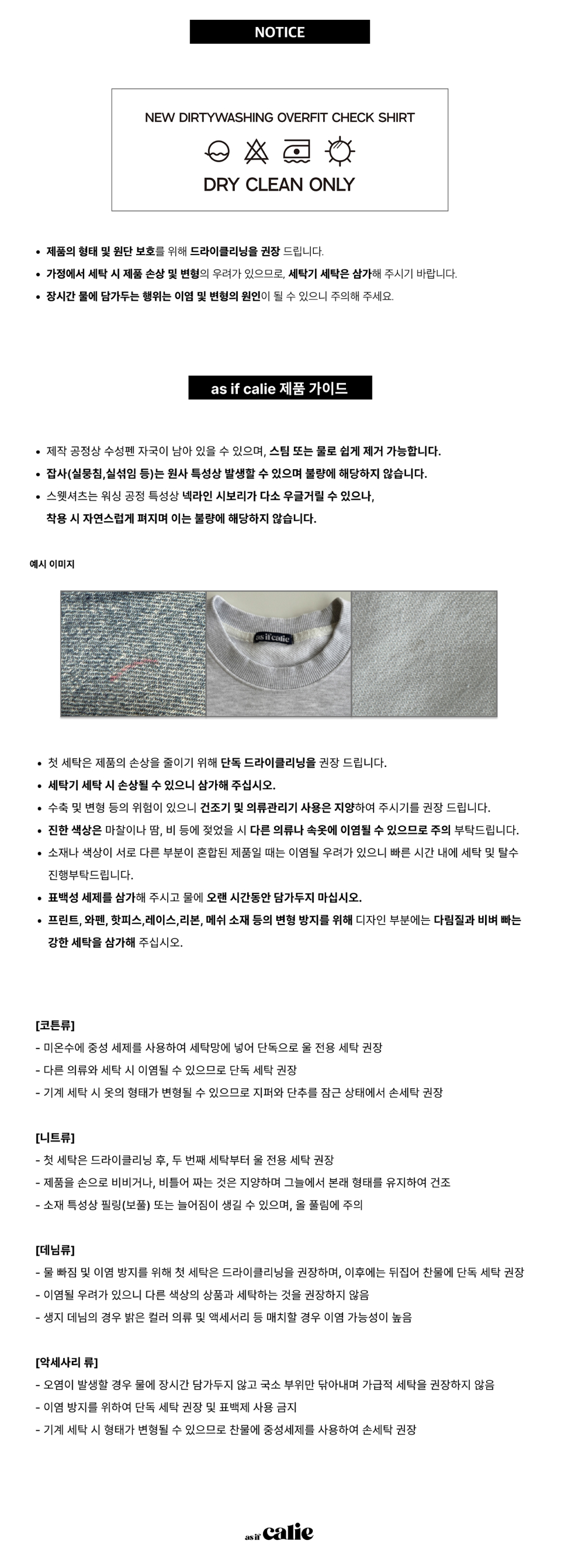제품 및 소재 변형을 막기 위해 건조기 사용은 삼가 주시기 바랍니다.