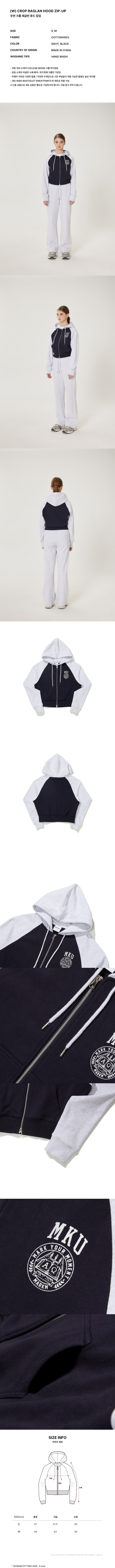여성 크롭 래글런 후드 집업 네이비 (MHIBH8652)