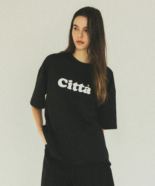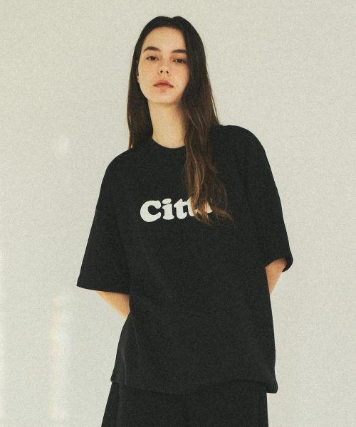 시그니처 로고 오버핏 루즈 티셔츠_CTT312(블랙)