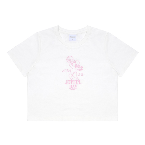 여성 조이풀 데이 그래픽 크롭 티셔츠 화이트 (MHIBH8853)
