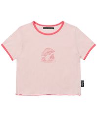 핑크 머쉬룸 배색 반팔 티셔츠