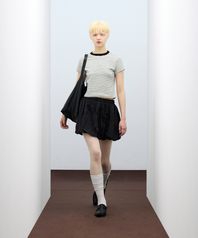 85-VIVA116 라운드 컬러 스트라이프 반팔 숏 슬리브 화이트