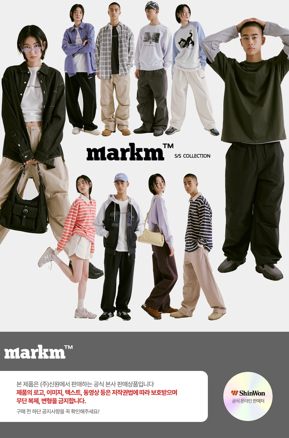 마크엠(MARKM)은 'Mark the Moment’이라는 슬로건처럼, 기억하고 싶은 순간을 만드는 데일리 캐주얼 웨어 브랜드입니다. 일상과 여가의 경계에서 실용적인 디자인과 스포티한 요소가 어우러진 컬렉션에는 신선한 에너지와 함께 자유로운 멋이 가득합니다. 스트릿 감성의 의류부터 실용적인 가방과 포인트가 되는 액세서리까지 상징적인 베이직 로고와 친근한 느낌의 키튼 로고를 담백하게 담아내며 그 자체로 스타일이 되는 브랜드의 정체성을 보여줍니다.