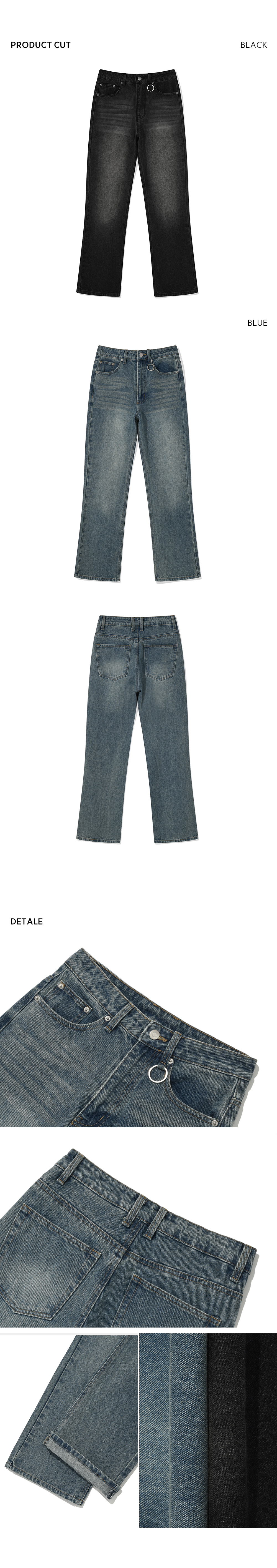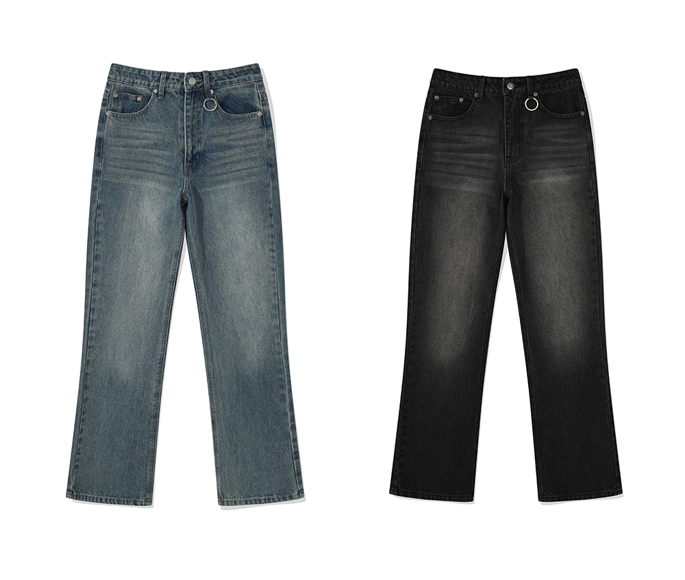 캣워싱 키링 플레어 데님 부츠컷 팬츠 [블랙]