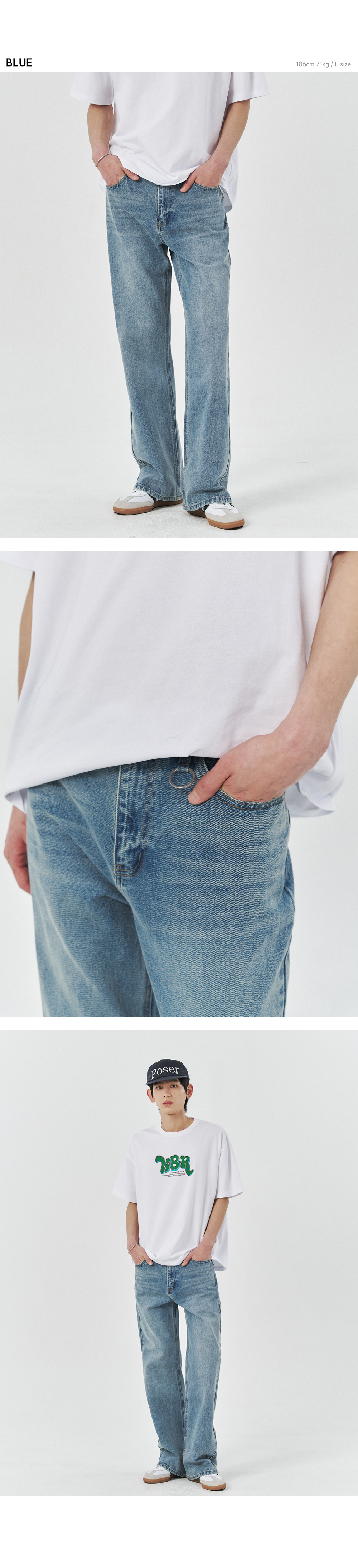 캣워싱 키링 플레어 데님 부츠컷 팬츠 [블루]