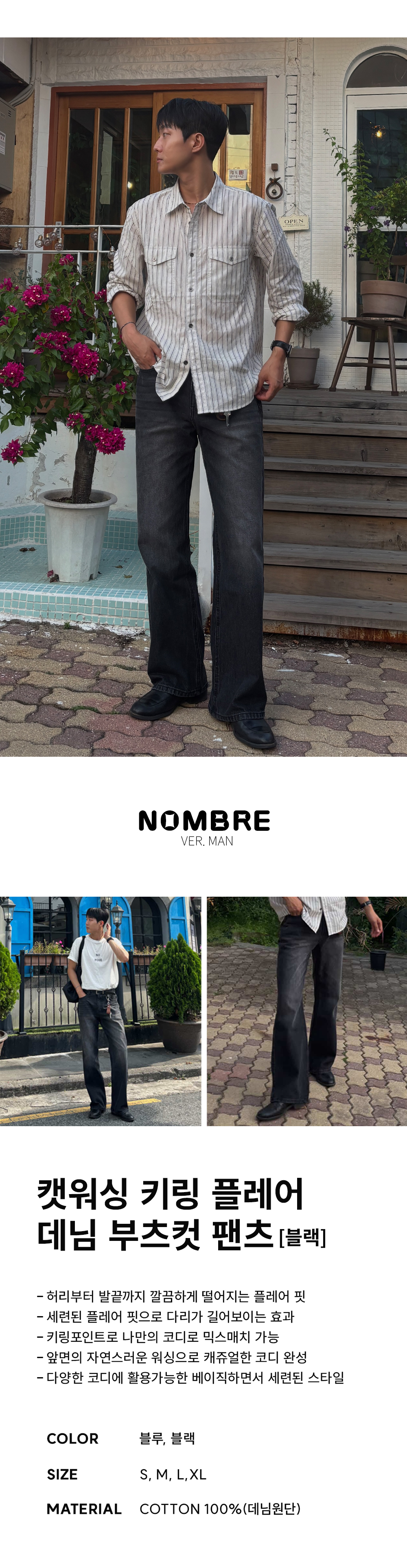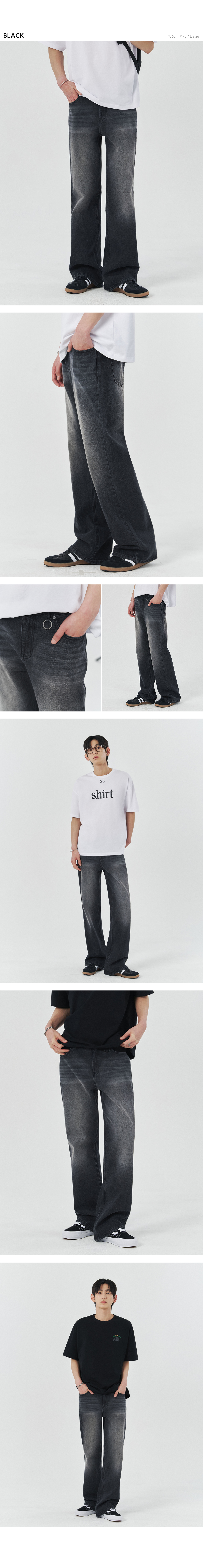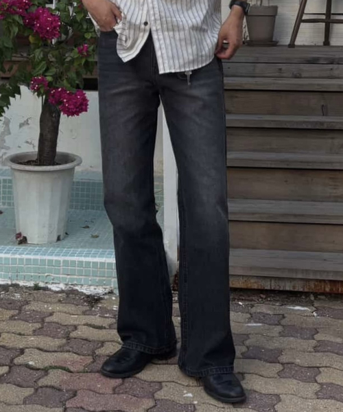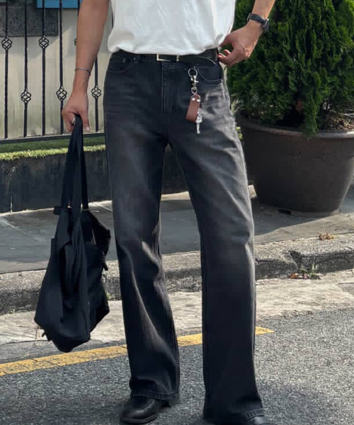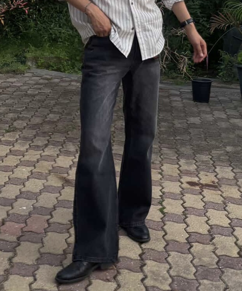 캣워싱 키링 플레어 데님 부츠컷 팬츠 [블랙]