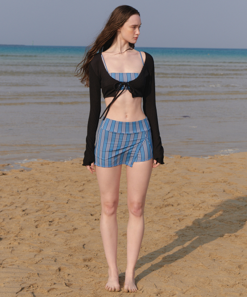 A CHECK BIKINI SKIRT SET UP_BLUE