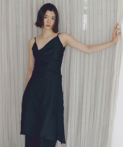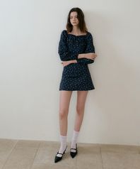 GENA DOUBLE BUTTON SQUARE NECK MINI OPS BLACK