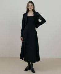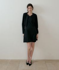 RIE ROUND JACKET WITH FLARE SLEEVELESS OPS BLACK