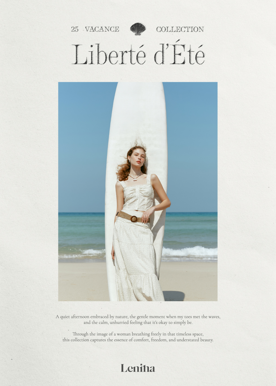 르니나(LENINA)는 여성으로부터 영감을 받습니다. 우리가 매일 걷는 거리, 보는 것, 느끼는 것에서 시작하여 당신의 일상 속 감각적인 룩을 제안하는 브랜드입니다.