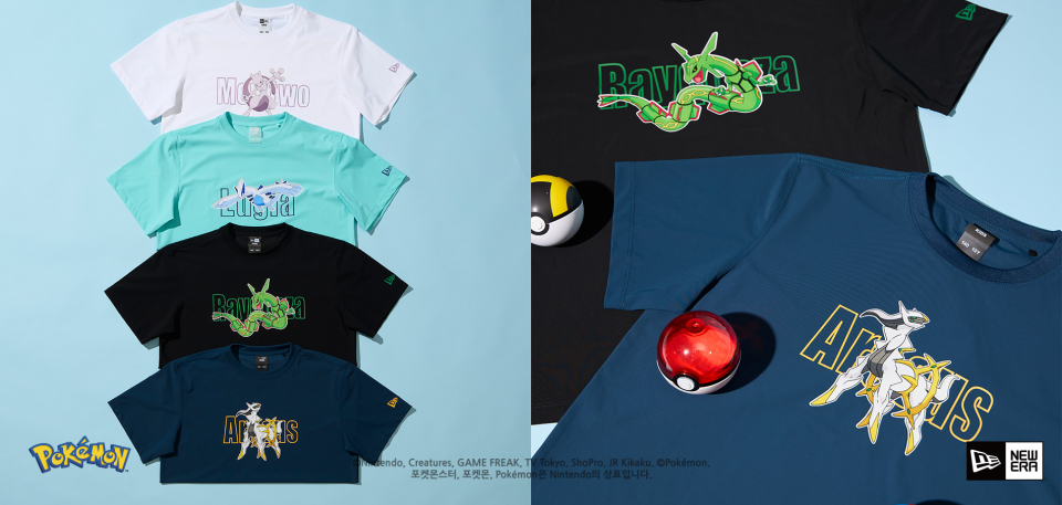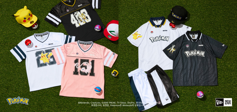 총 21종으로 구성된 의류는 프린팅이 돋보이는 쿨에라 반팔 티셔츠와 스포티한 무드를 갖춘 메쉬 티셔츠, 풋볼 스타일의 저지 티셔츠와 숏 팬츠, 래쉬가드까지 다양한 실루엣으로 만나보실 수 있으며, 아이들이 좋아하는 포켓몬 그래픽 프린팅과 포켓몬의 넘버링 등 다채로운 포인트가 있습니다. 보기만 해도 기분이 좋아지는 사랑스러운 포켓몬들과 환상속의 전설의 포켓몬까지! 뉴에라와 함께하는 포켓몬 컬렉션으로 우리 아이에게 즐겁고 시원한 여름을 선사해 보세요!