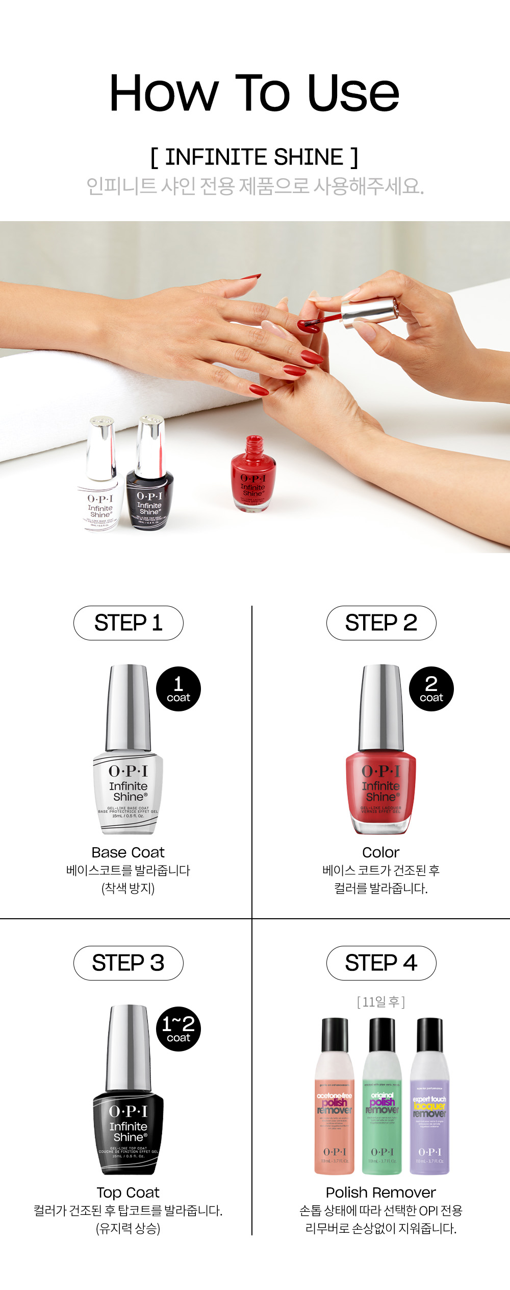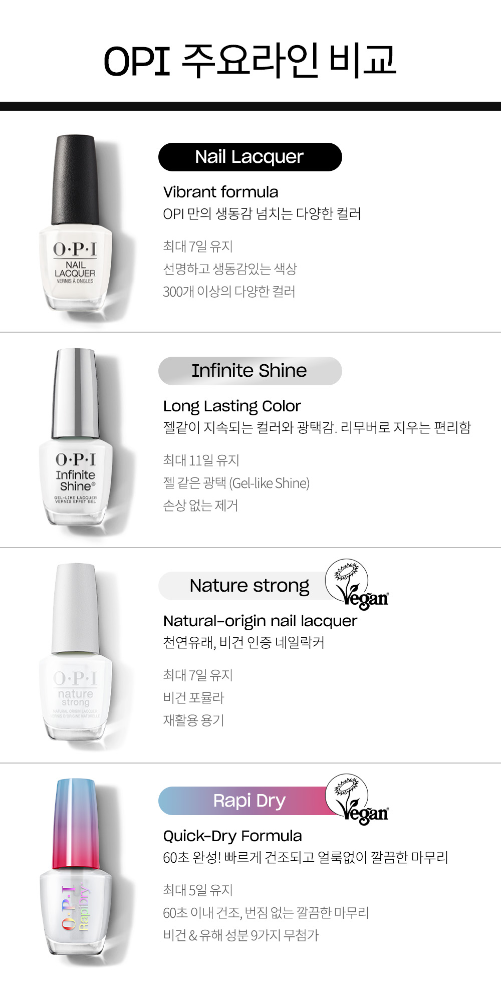 오피아이(O.P.I)는 손 끝에서 본연의 아름다움이 완성 되도록, 누구나 스스로에게 어울리는 컬러를 찾을 수 있도록 세상의 모든 컬러를 재현해낼 수 있는 단 하나의 브랜드입니다.