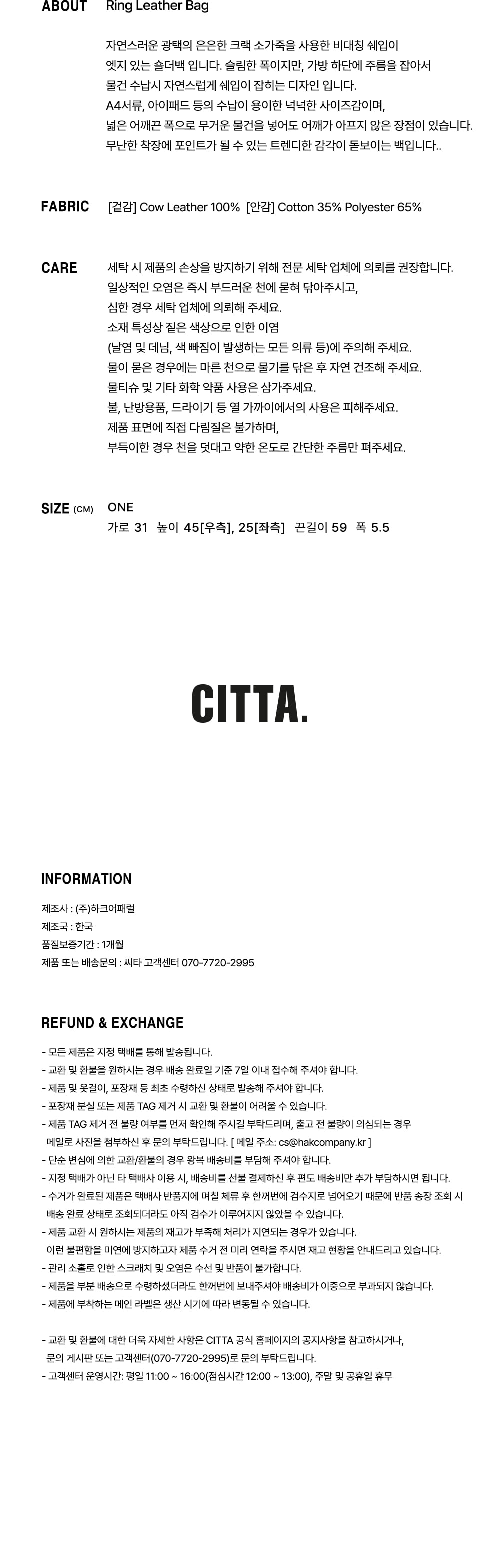 링 리얼 카우 레더 백_CTA916(블랙)